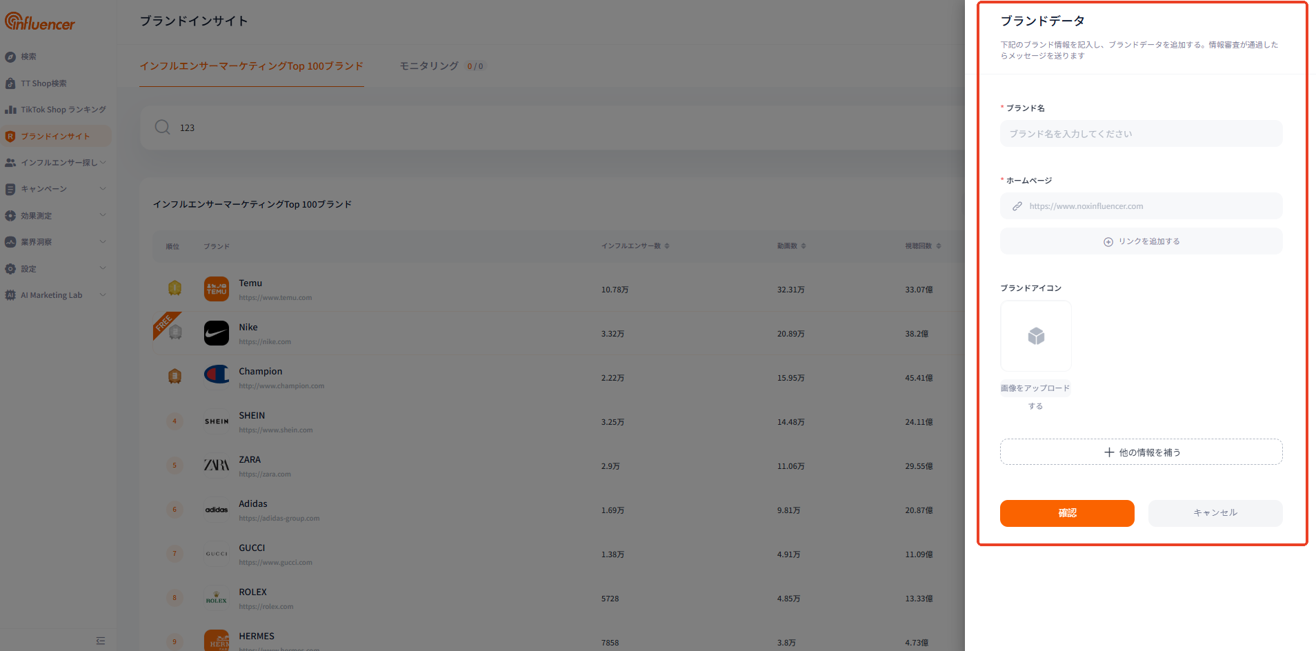 モニタリングを追加すると、基礎レポート+上級レポートの自動解除以外、当該ブランドと提携している全インフルエンサーと動画コンテンツの閲覧